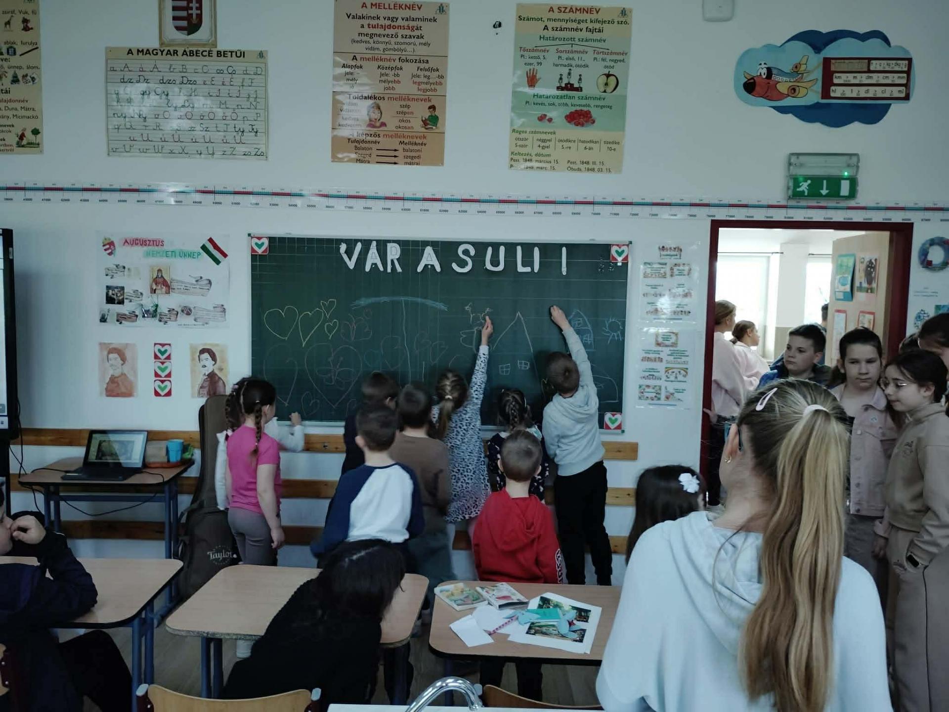 Nagy örömünkre ellátogattak hozzánk a nagycsoportos óvodások, akiket Szilvi néni és a 4. osztályos tanulóink szeretetteljesen fogadtak. A kicsik bepillantást nyerhettek az iskolai életbe, megismerkedhettek a tantermekkel és játékos, vidám programokon vehettek részt.