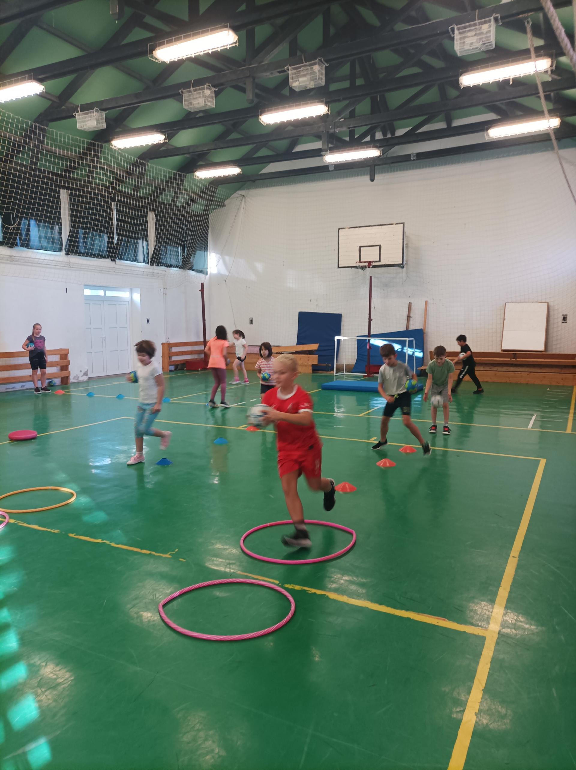 Az edzések jó hangulatban telnek Anett néni irányításával az iskola tornatermében. A gyerekek egyre ügyesebbek, látni lehet a lelkesedést, és a mosolygós tekinteteket az órákon. Heti két alkolommal történik a mozgás elsajátítása.