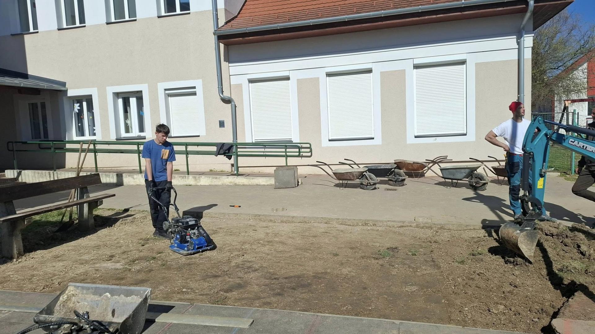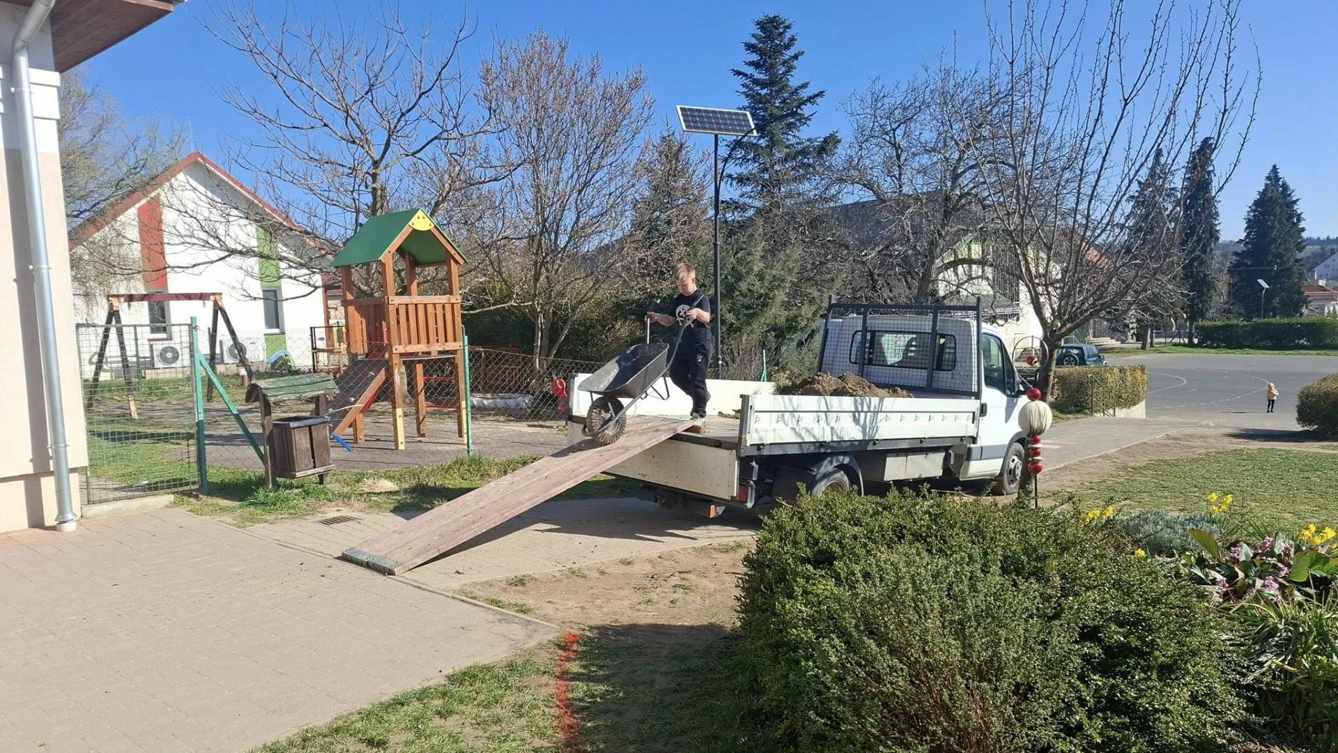 Ma délelőtt folytatódott udvarunk szépítése, hála a lelkes szülőknek!