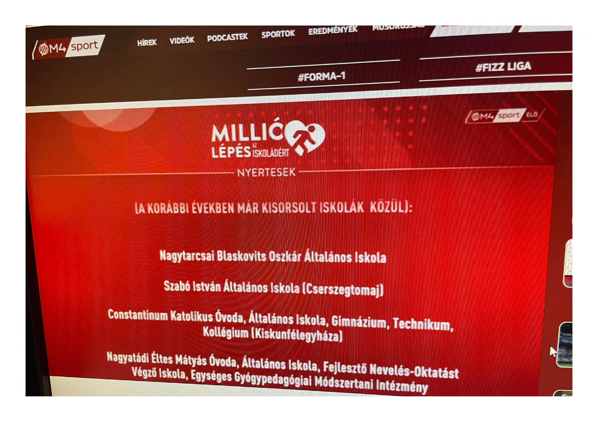 Örömmel és büszkeséggel osztjuk meg a hírt, hogy iskolánk a Millió lépés az iskoládért program keretében 1 MILLIÓ FORINTOT NYERT!