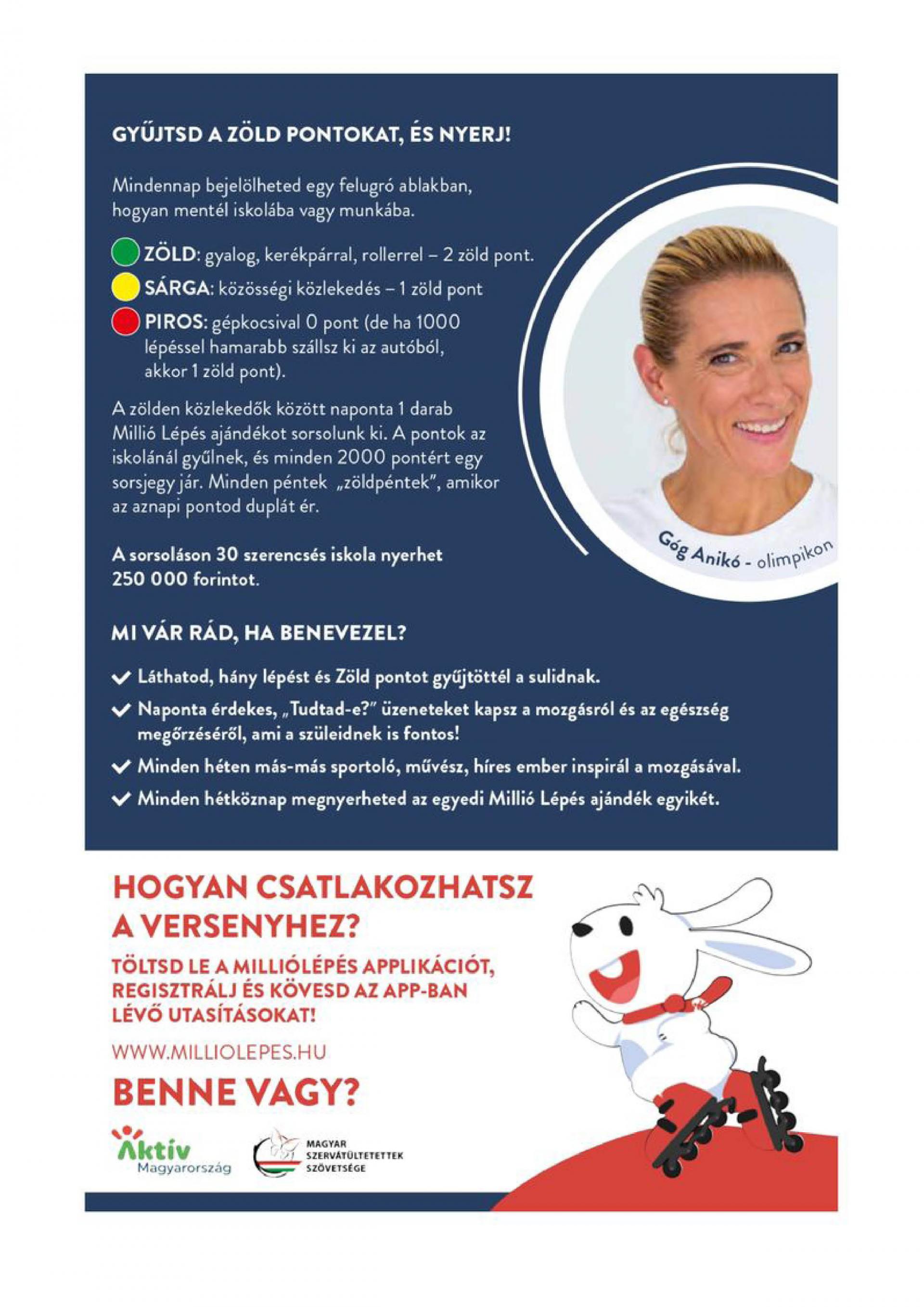 Kérlek, töltsd le a Millió Lépés applikációt és csatlakozz iskolánk közösségéhez!