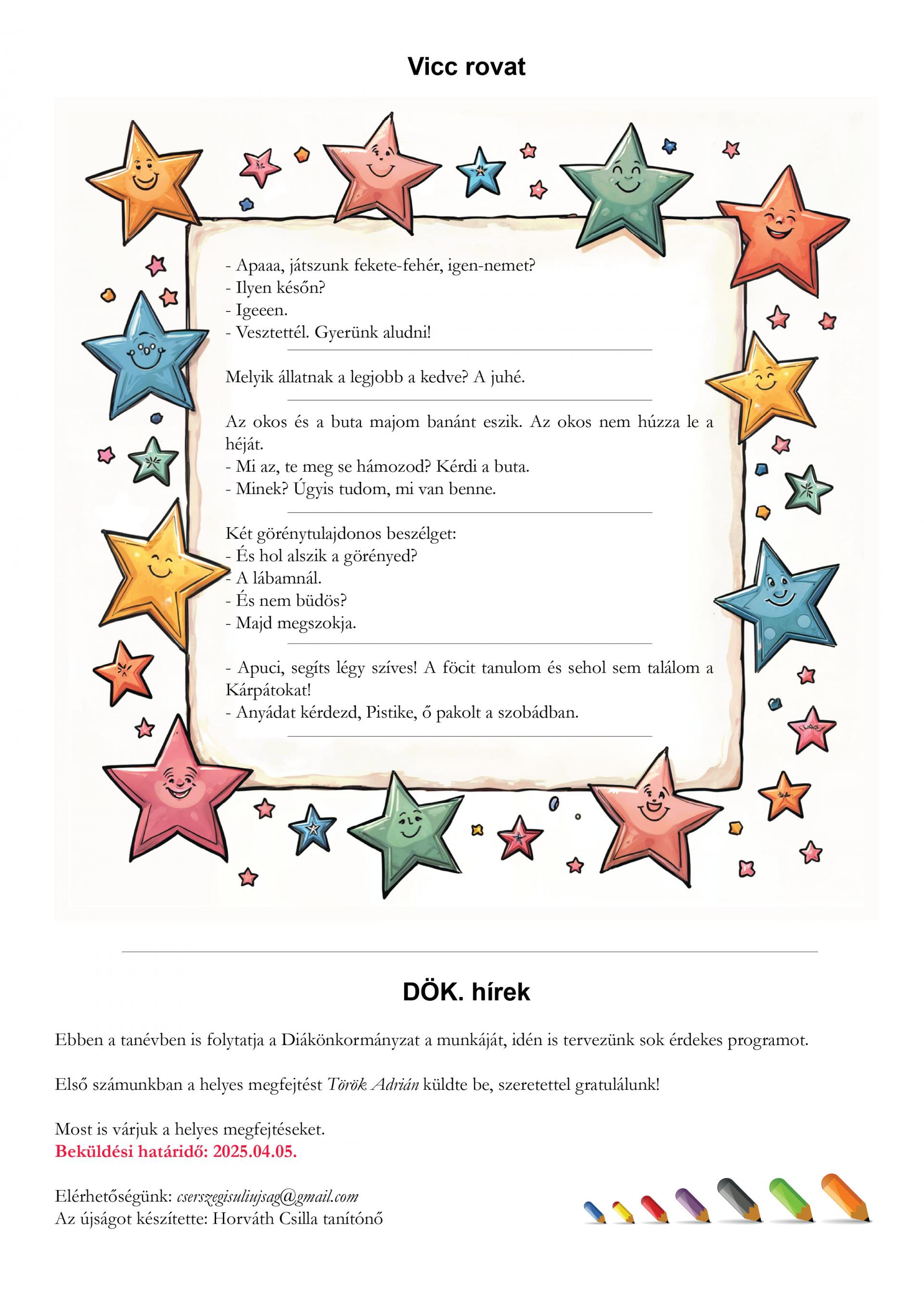 Hírek Suli Hírmondó - Iskolaújság II. 2025. március 10., hétfő @ 10:00 Kapcsolódó galéria Suli Hírmondó - Iskolaújság II. Megosztás
